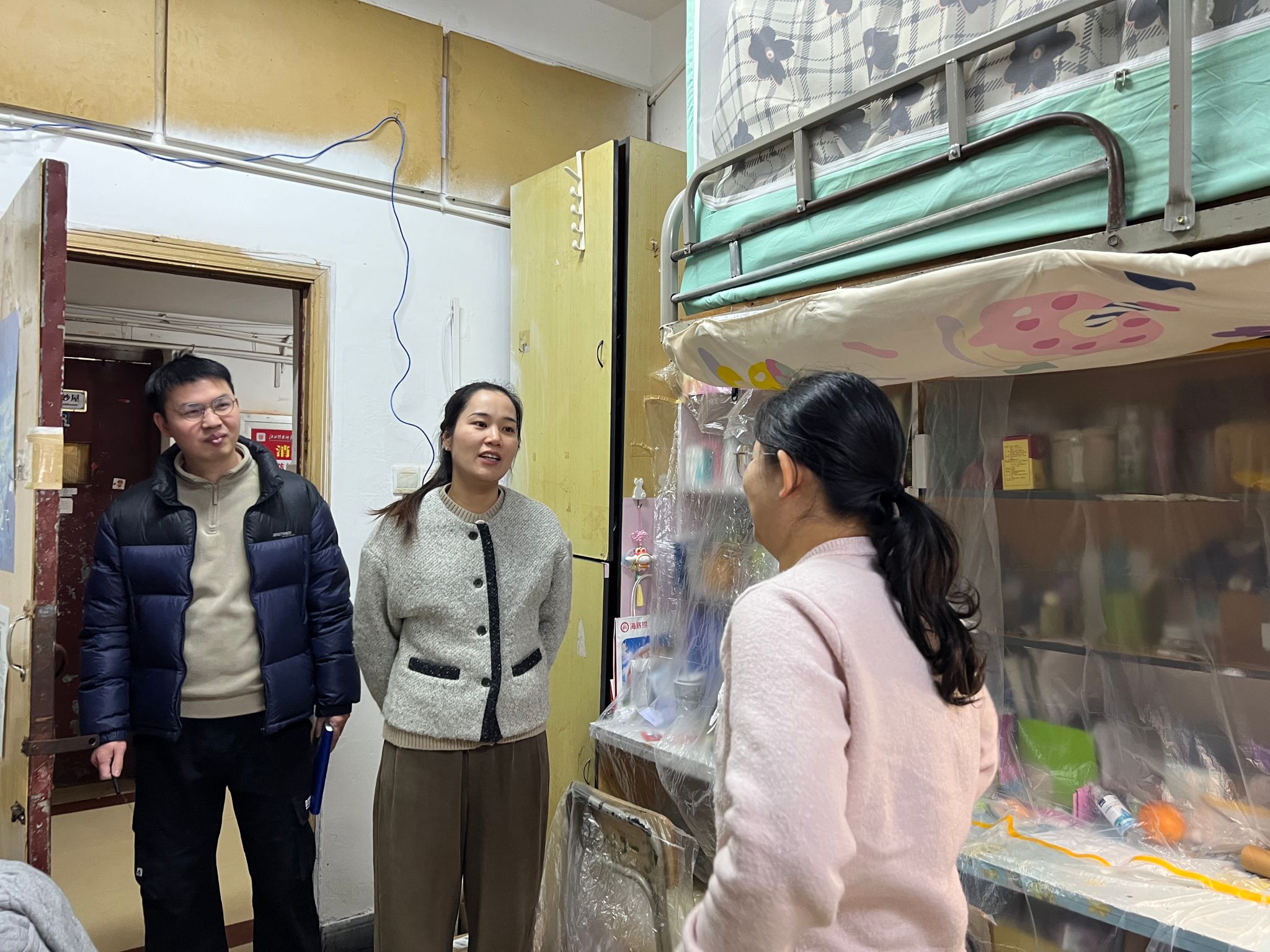 在走访宿舍过程中,老师一行化身“安全监督员”,紧盯用电规范、消防安全、卫生状况等细节,排查电源插座超负荷运行、电线乱拉乱接等用电安全问题与寝室卫生整洁度。老师与学生面对面交流,细致询问了期末考试情况与假期安排,也向同学们送上温馨叮嘱:假期虽至,安全不“打烊”,返家注意交通安全,妥善保管好个人财物,寒假期间做好用火用电安全防范,注重人身安全,提高防范意识,谨防电信诈骗。