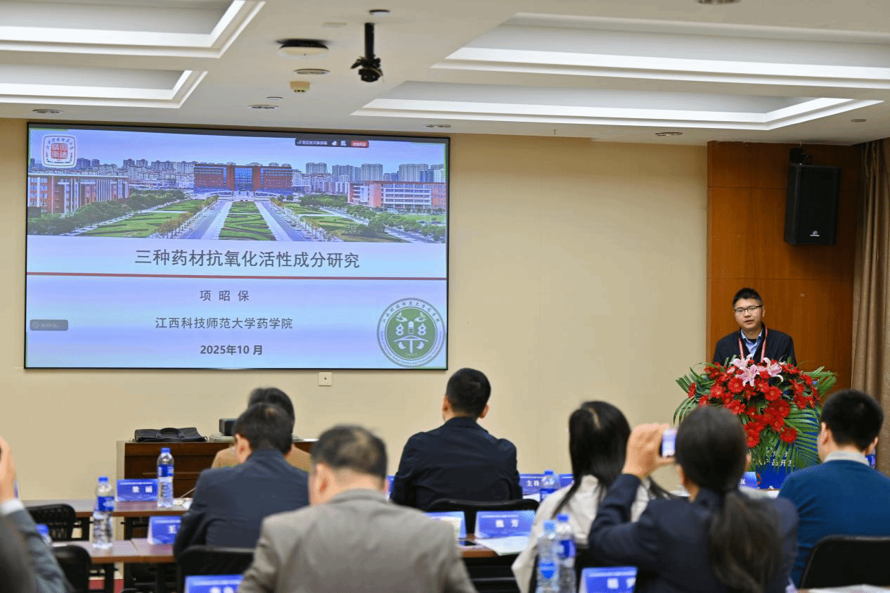 我院中药药效物质基础研究团队项昭保教授受邀出席此次研讨会并进行了学术交流。项昭保教授就多花黄精、柳叶菜风毛菊和北豆根等三种药材的抗氧化成分研究作了会议口头报告,报告题目为《三种药材抗氧化活性成分研究》。