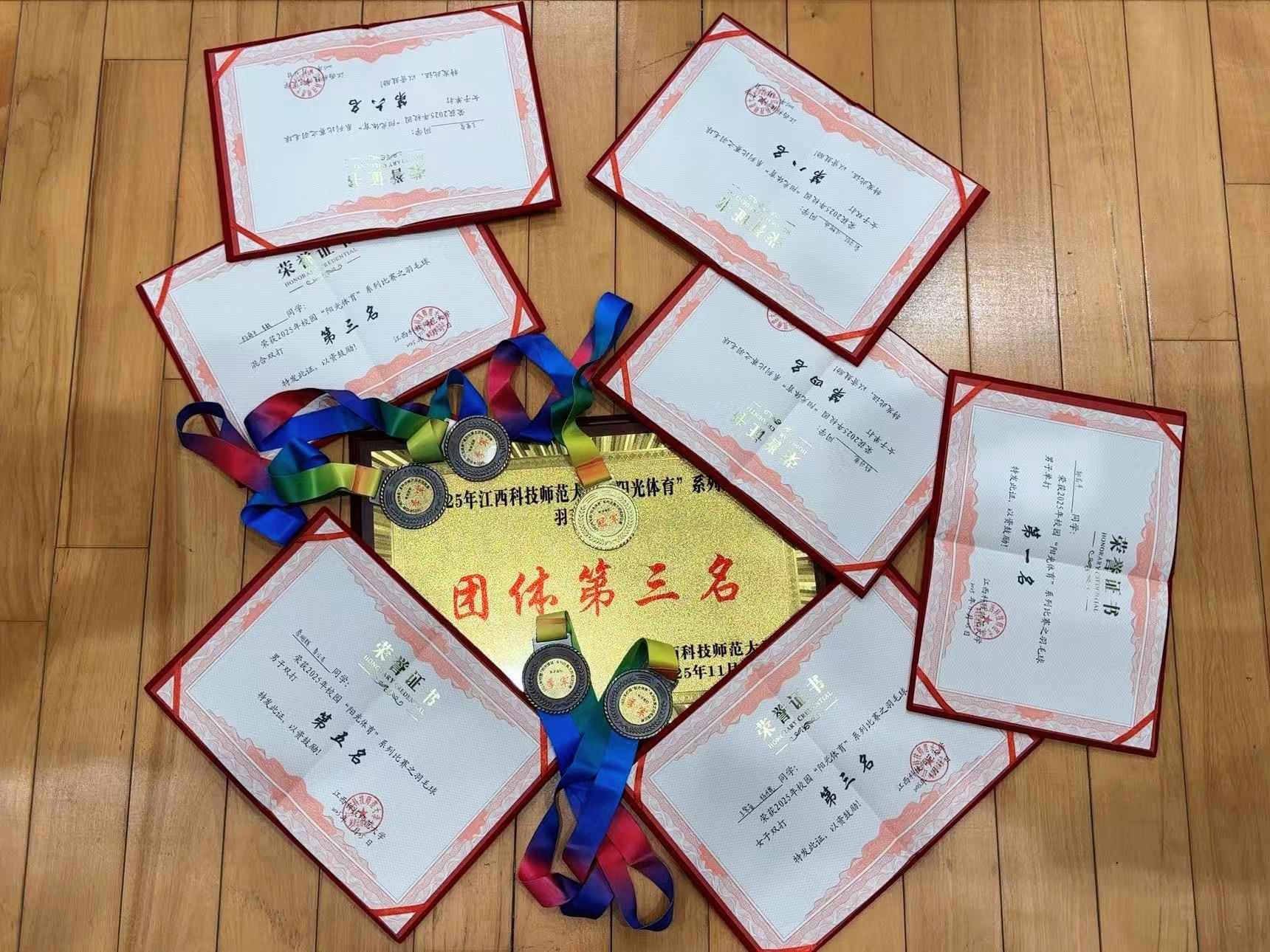 赛事伊始,混合团体赛的较量扣人心弦,在“混双+男单+女单”的赛制里,队员们心往一处想、劲往一处使,彼此精准补位、默契配合,无论是进攻时的凌厉攻势,还是防守时的严密防线,都展现出强大的团队凝聚力。团体赛的精彩尚未落幕,单项赛的比拼已然开启,各位选手迅速调整状态,在多轮对战中沉着应对、奋勇争先,每一分的争夺都彰显着不服输的拼搏劲头。从团体赛的协同作战到单项赛的各自突围,选手们最终顺利完成全部参赛项目,斩获多项荣誉:团体项目勇夺第三,邱启杰斩获男单第一,蔡明辉与章江浩获男双第五,杨丹霓与王紫萱拿下女双第三,姜毅与杨薛平获混双第三,俞可欣与江柳涵位列女双第八。从团体到个人的亮眼表现,生动彰显了药院学子蓬勃饱满的青春活力与奋勇争先的竞技风采。