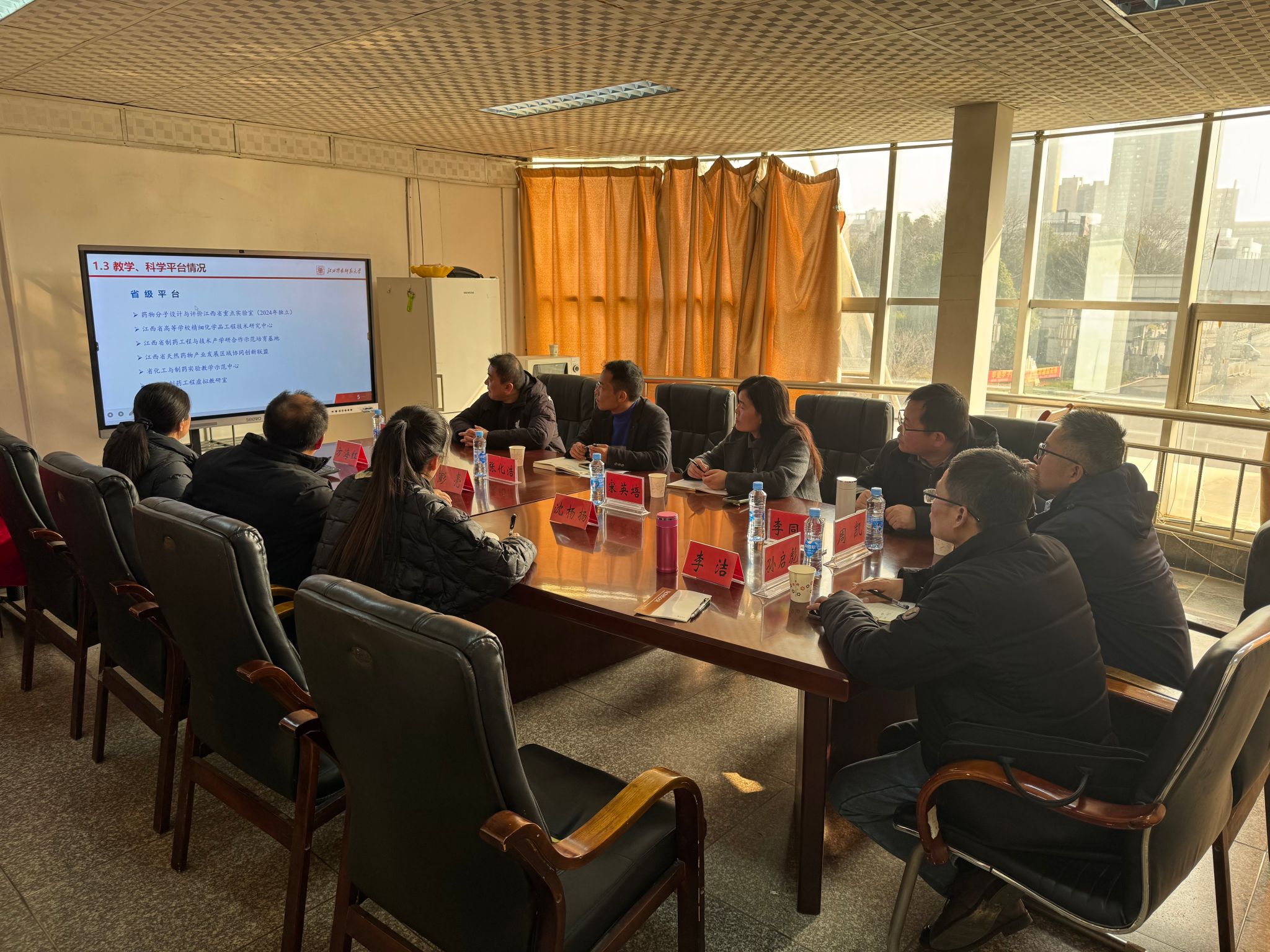 为深化药学学科建设,加强校际合作交流,1月23日下午,九江学院药学与生命科学学院院长张化浩、副院长宋英培带领学院骨干教师一行六人,莅临我院开展交流学习。党委副书记沈杨扬、副院长彭亮、药学系主任方海红、药物制剂系主任李洁参加了此次座谈。