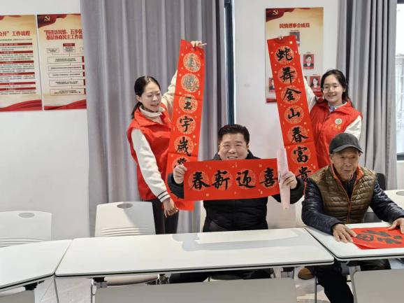 活动期间,针对社区老年群体常见健康问题,实践队员发挥药学专业优势,开展健康科普讲座,围绕流感预防、关节痛护理、高血压控压等关键知识点,结合生活实例讲解用药误区与日常防护技巧,为老人们送上“健康锦囊”。实践队员们还亲手书写春联,一笔一画承载着对长辈的敬意与新春祝福,将药学人的温暖与关怀送到老人心坎上。在社区幼儿托管所,他们化身“安全小老师”,通过趣味互动、实物展示等方式,为孩子们科普常见药物的名称、用途及安全使用常识,引导孩子们树立“远离危险药物”的安全意识。一张张手写福字传递着美好期许,让孩子们在欢声笑语中收获知识与温暖,也让药学科普走进童年时光。