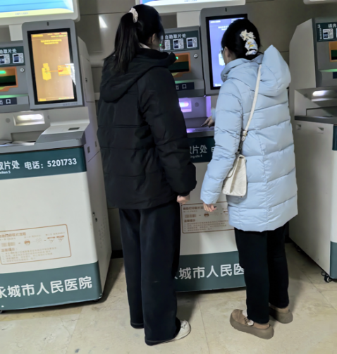 实践期间,贾若馨的核心任务是导诊与分流。面对患者“看某某科怎么走“报告去哪打印”等看似简单的问题,她需要先将问题“归类”,再精准给出指引:遇到已挂号却找不到候诊区的老人,她会确认科室与楼层并护送到位;遇到紧急不适或疑似急症的患者,她会立即引导至急诊并通知工作人员,避免耽搁。线上就医协助也是重要工作,寒假老年患者较多,她会提前指导准备证件、用简短指令引导操作,同时严守隐私边界,对反复操作失败的患者,及时建议转人工窗口,避免在自助区耗时过久。此外,她还协助行动不便者、视力不佳者找到无障碍通道与轮椅借用点,对紧张的患者放慢语速、反复确认步骤,这些细致服务收获了患者真挚的感谢与笑颜。