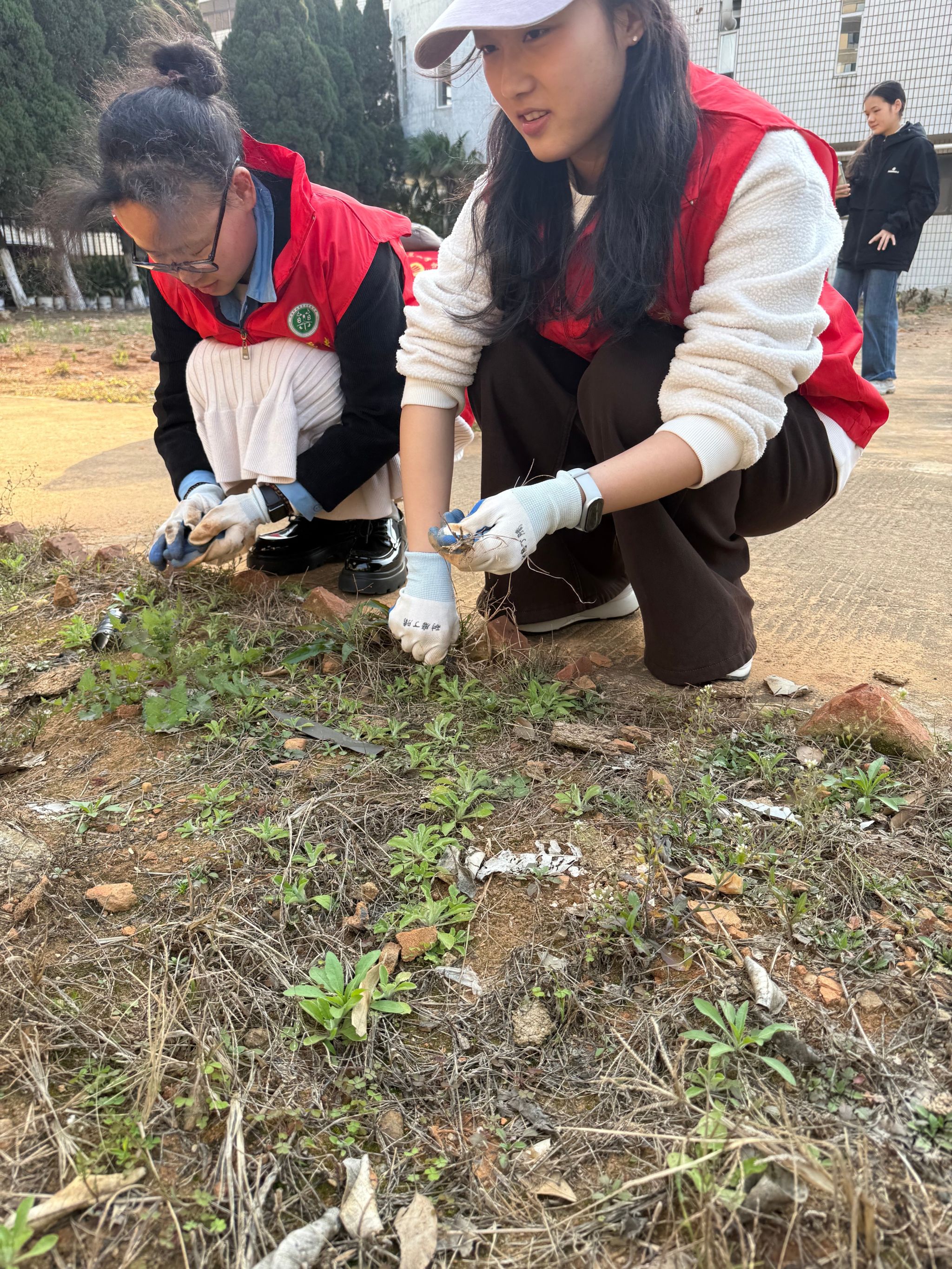 活动伊始,志愿者们在学院老师的带领下分为两组,分别前往银杏林和药用植物园开展实践活动。在银杏林,志愿者们手持水桶为每一棵树浇水养护。与此同时,另一组志愿者在药用植物园细心拔除杂草,不放过任何一个角落。活动过程中,学院老师向志愿者们讲解了植物养护的小知识,让大家在劳动实践中增长生态知识,深化环保认知。