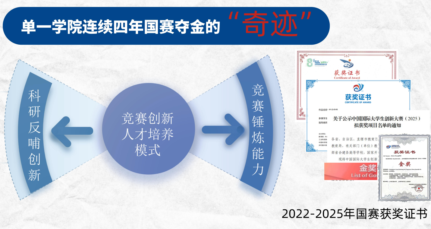 学院党委先后荣获“江西省高校先进基层党委”“全省高校党的基层组织建设创新成果一等奖”等多项荣誉,教师队伍中涌现出全国优秀教师、国务院政府特殊津贴专家等一批优秀典型。近年来,学院在科研创新、人才培养等方面成效显著,获批国家自然科学基金等课题近100项,发表SCI、EI期刊论文300余篇,学生在各类国家级、省级竞赛中获奖160余项,位列全校第一。特别是师生团队连续四年(2022-2025年)在中国国际大学生创新大赛中斩获国赛金奖,创造了奇迹!
