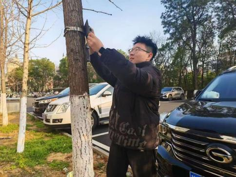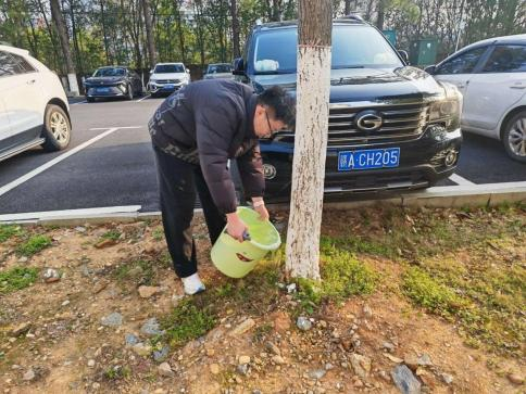 志愿者们手持水桶、抹布、小铲子等工具,对校园银杏林开展全面养护。大家擦拭铭牌、清除杂草、浇灌养护,细致排查树木生长情况。一株株银杏承载着校友深情与祝福,在一代代药院学子的接力守护中,成为感恩母校、传递爱心、传承奉献精神的鲜活载体。