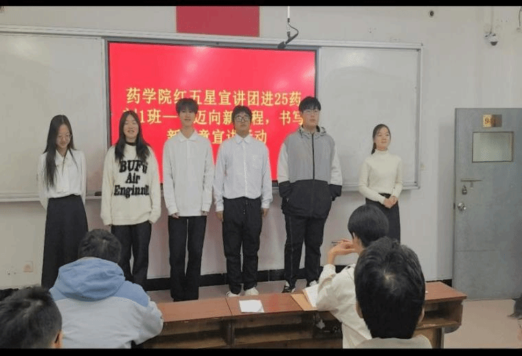 为深入学习贯彻党的二十届四中全会精神,全面贯彻落实习近平新时代中国特色社会主义思想,推动学生统一思想、凝聚共识,积极投身全面建设社会主义现代化国家新征程,11月19日,以“迈向新征程,书写新篇章”为主题的宣讲活动在25制药工程二班、25药剂一班开展。